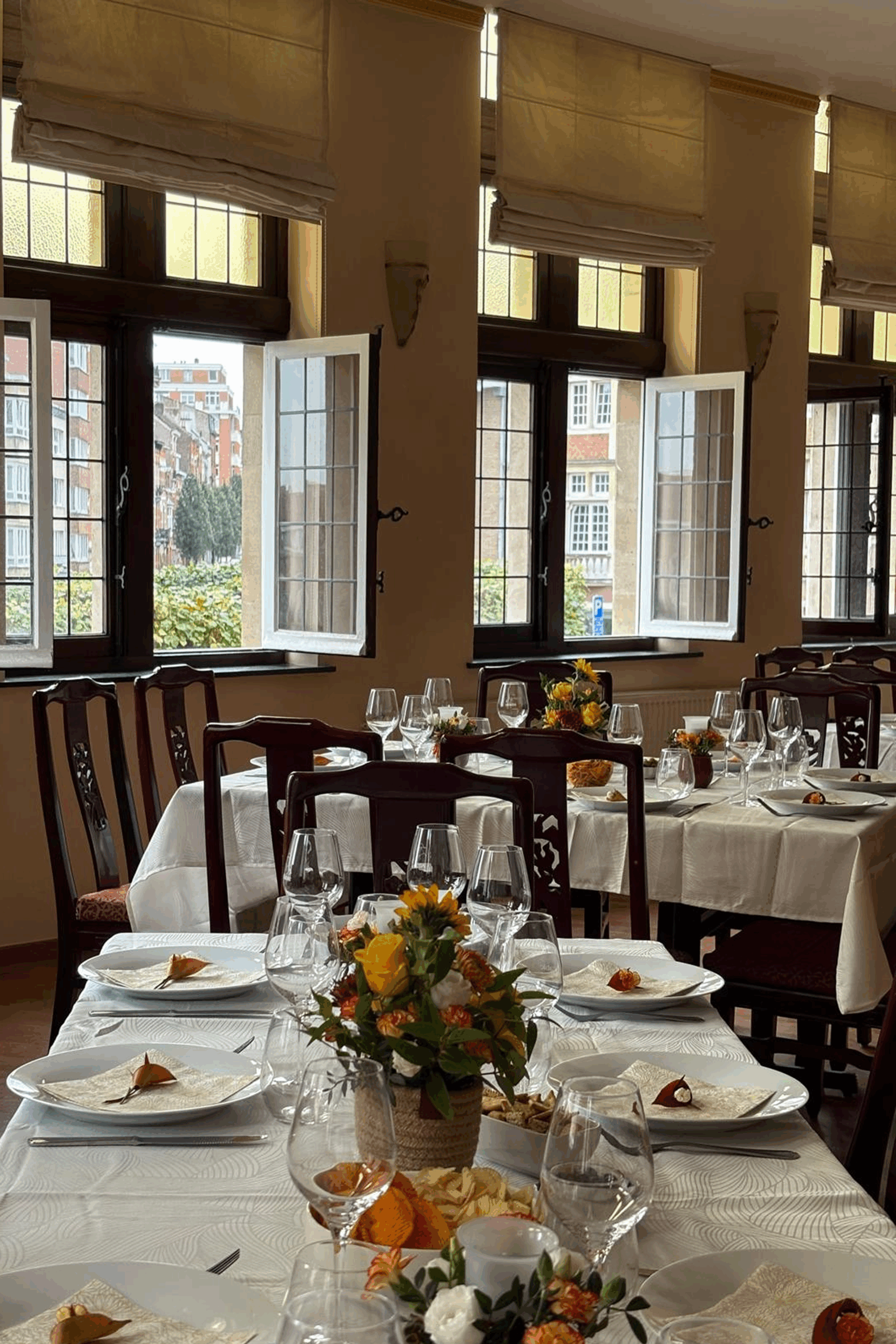 Op de bovenverdieping verwelkomt een mooie, aanpasbare ruimte jouw privé of zakelijke evenementen. Proeverijen, diners met vrienden of vergaderingen: alles is mogelijk in deze grote zaal met plaats voor 60 zittende en 80 staande gasten.